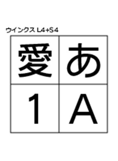 日本語フォントは、漢字が大きく、かな文字が小さいために横も縦方向もラインが揃いません。このデザイン上の悩みを解消したのがWINKS-Lのシリーズです。あたかも横に縦に揃うようにデザインしたかな文字を組み込みました。テレビテロップやPOPに多用されているフォントです。太さ(ウエイト)のバリエーション(ファミリーフォント)としてはS1、S4、S7、S10の4種類があります。インストーラー内で OpenType、TrueType の選択を行い、シリアル入力時に使用していた PC(Win、Mac)で利用 OS が決定されます。※決定した時点で OS、FontType が固定され、以降そのシリアルでは OS、FontType の変更ができなくなります。